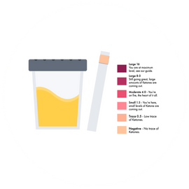 The strips record the ketones your body excretes through your urine, which tells us that your carbohydrate and protein intake is low enough, resulting in your body needing to produce ketones.