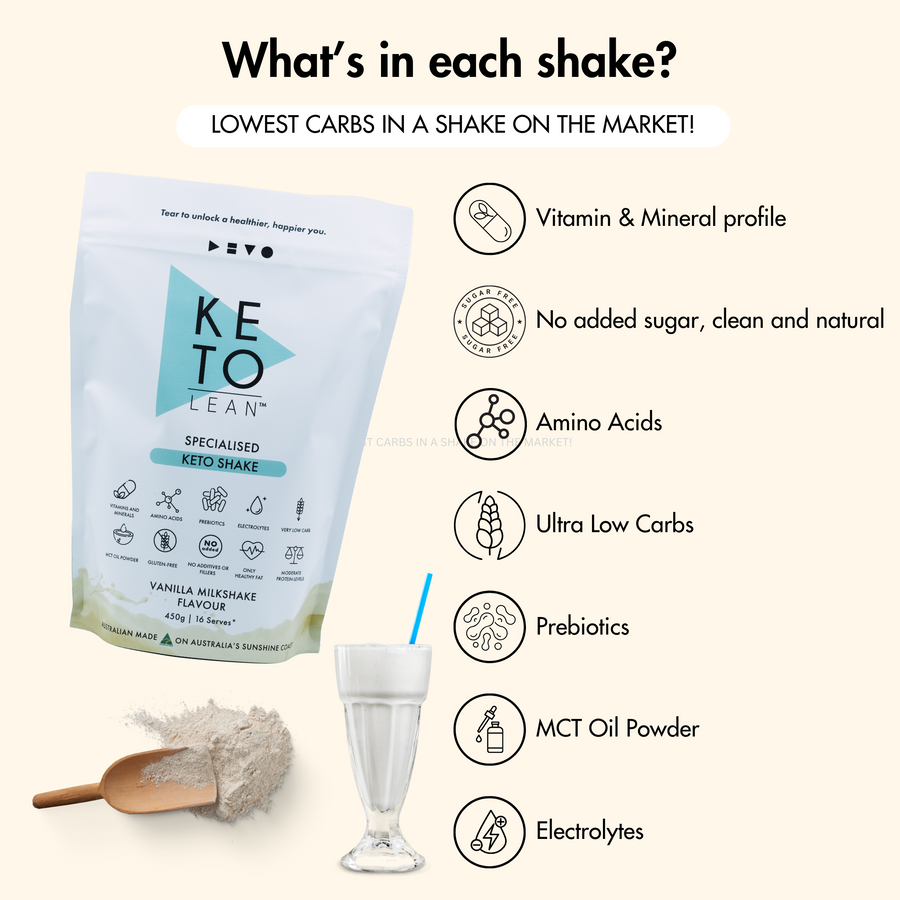 We have intentionally chosen these fat levels in the shake, after much trialling we have found this level of fat to be optimum for your gut and results. Consuming a shake with higher amounts of fat will result in gut cramps or reflux, so we encourage you to get the remainder of your fat intake via other means, such as adding our Keto Enhancing MCT oil to your shakes or meals.