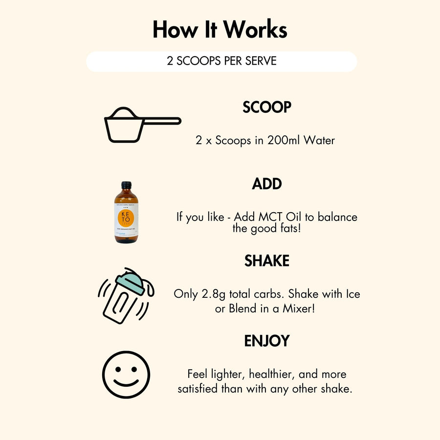 When following our example Keto Meal Plan included with every purchase, we recommend having 2 shakes a day, however, you can use our shakes as you feel best to make your Keto or Low Carb journey easy.